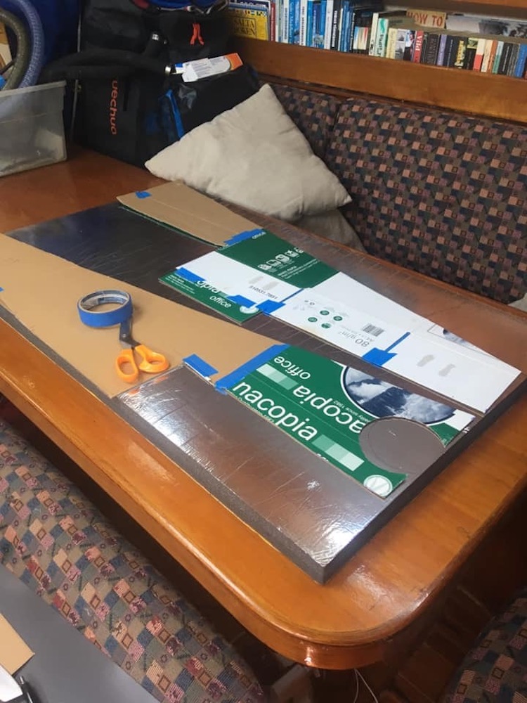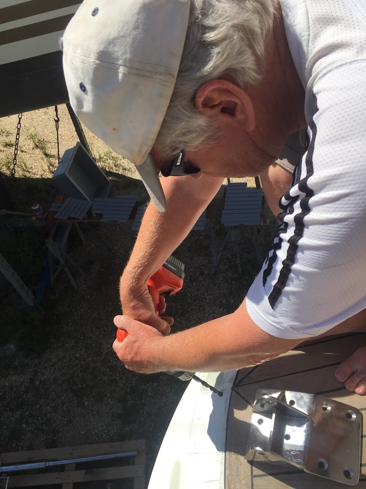 Just nu har vi fem stora överskuggande projekt pågående parallellt, det är renoveringen av vårt tidigare läckande teak däck, översyn och renovering av vår motor och motorrum, renovering och installation av ett nyinköpt vindroder, bygga ställning för och installera nya solceller och tillskärning och beklädnad av nya dynor i salongen. Sen finns en hel del mindre projekt som ligger och lurpassar i olika stadier som att installera den nyinköpta kicken, sy ny sprayhood , bimini och soltak, renovera läckande diskhoar, byta kranar och pumpar i pentryt, installera ett inre förstag (och köpa stagsegel och stormfock) för att nämna några.