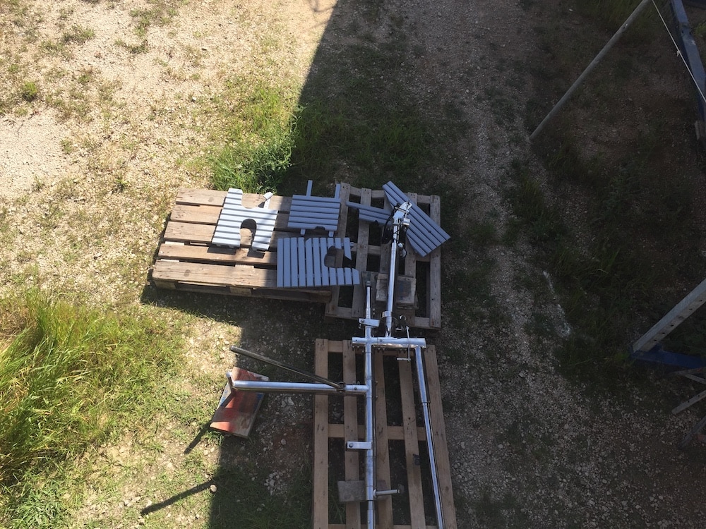Solcellerna har också tagit en paus och är nedprioriterade då vi inte är beroende av våra batterier på varvet, vi har 220V landström. Det är också en av anledningarna till att vi vill vara på varvet, förutom tillgång till kompetenta specialister i varvets tekniska avdelning.Så efter att rostfriNissen (Dimitris på Inox) satte ihop rörställningen med våra solceller ( fyra gånger 110 W) som är kombinerad bimini så har arbetet tagit en paus. Vi ska när det återupptas installera dem, inklusive en MPPT regulator och lite andra tillbehör som volt/amperemätare och en inverter (omvandlar 12V likström till 220V växelström).