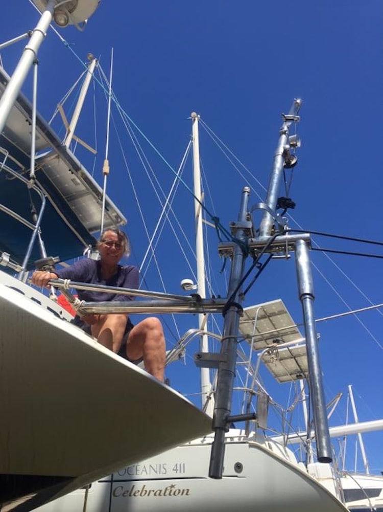 Det sista stora projektet är vindrodret. Vi köpt det av ena holländskt par ombord en Grand Soleil 48 som skulle säljas. Då deras akterplattform är mycket lik våran och dessutom tyckte vi att vindrodret var inte bara funktionellt (eget roder och ett pendel som krafthjälp) utan också vacker frågade vi om det kunde säljas separat. Ett år senare var affären i hamn och vi kunde hjälpa till att montera bort Royal Perfect som vindrodret heter från deras båt och transportera det till Sarita. Där har det legat i nästan ett år innan vi tagit tag i monteringen.