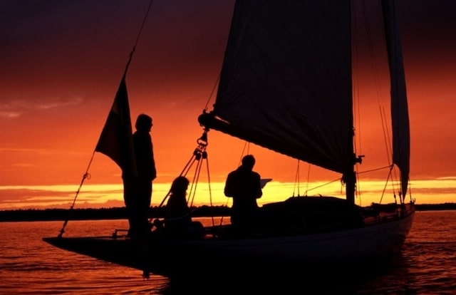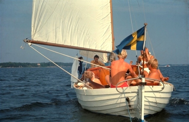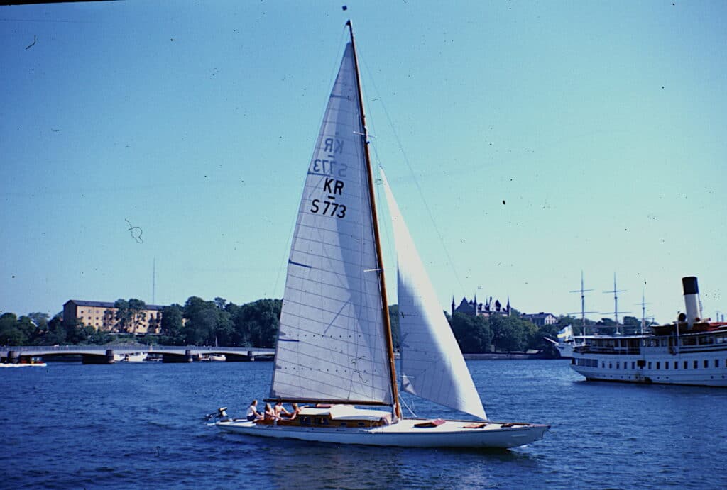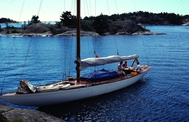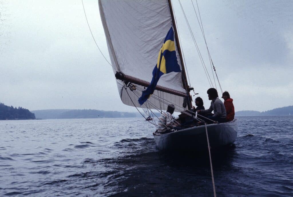 Det gällde att ha långkölat och det blev en hel del smällar, de flesta dock i låg kontrollerad hastighet när vi gled fram efter att ha droppat seglen på väg in till en klipphäll att förtöja vid. Eller som när vi försökte kryssa in i det smala gattet in till Säck i Stockholms skärgård. Klippor på ena sidan och en vassrugg på andra innan klippor tog vid. Någonstans hade jag hört att stenar inte finns där vassen växer, något jag blev motbevisad med en smäll. Att då inte ha någon motor gjorde att den gängse metoden för att komma loss från våra grundbesök var att ro ut ankaret och dra oss loss.
