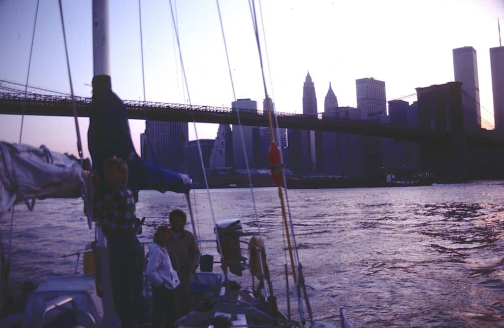 Efter att ha blivit förmodligen den mest porträtterade båten i New Yorks historia lyckade vi till slut ta oss loss med hjälp av en vindpust med skotade segel, vilket lutade till båten, något vi gjorde samtidigt som svallvågorna från en passerande bogserbåt nådde oss (med glatt vinkande och leende besättning), och full back på motorn. Det var med en lättnande suck vi kände att båten hade fått vatten under kölen och vi kunde fortsätta vår färd med svansen mellan benen. Vid en inspektion kunde vi konstatera att båten hade klarat sig med bara några skrapmärken på kölen, vilket var mer än man kunde säga om besättningen vars stolthet än i dag ligger på botten framför Frihetsgudinnan i New York.