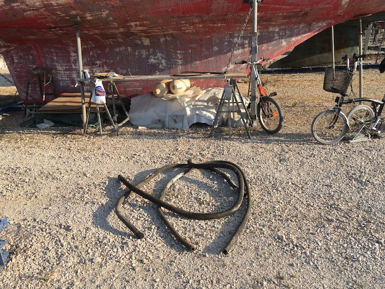 Det senaste projektet som skapat en härlig tillfredsställelse är byten av alla gamla slangar för dränering av handfat och dusch på toaletterna samt diskho i pentryt. Det har inte varit lätt att komma åt och dra ut de snart 30 år gamla slangarna som till och med är stelare än våra kroppar, och ersätta dem med nya fräscha slangar. men det har gått. Vi har dessutom upptäckt att en del slangar har bara dränerat rakt i kölsvinet vilka vi nu har kopplat så de leder ner till vår gråvattentank. Dessutom så kontaktade vi varvet för vi ville fa bort så mycket fett som möjligt i tanken. Så med tre liter “propplösningsmedel” som ej skadar glasfiber blandat med vatten i botten lät vi sitta i åtta timmar (enligt instruktion) och sen kom tankbilen från varvet och sög ut allting. Vi sköljde sen tanken flera gånger tills allt såg klart och rent ut. Det kändes underbart att ha en fräsch tank igen.
