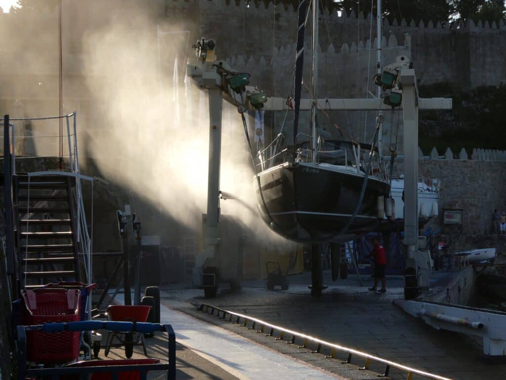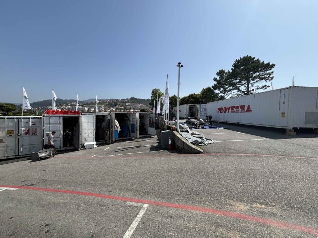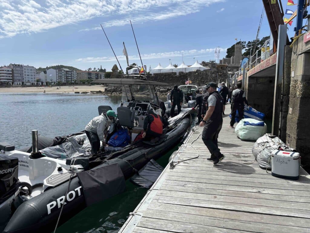 Alla på marinan var stressade då det var förberedelser för starten av 52 Super Series med TP 52 segelbåtar, 52 fots “entypsjollar”. Det startade 2012 med fyra båtar och har vuxit till stora evenemang med 60 båtar byggda hittills och där olika platser är värdar för kappseglingarna När vi var där så skulle kappseglingen hållas veckan efter i Baionas tur. Båtarna var ute och tränade på havet med sina följebåtar, gigantiska RIB båtar fullastade med segel och dubbla 300 hk utombordare, bara de kostar mer än de flesta fullt utrustade långfärdssegelbåtar. På marinans område hade det ställts stora containers, en för varje båt, med segelloft, mekanisk verkstad och förvaring av alla segel, rep och utrustning. Bryggorna fylldes av brunbrända självsäkra män där musklerna svällde under t-tröjorna med båtarnas namn och loggor på. Det var intressant att följa alla förberedelser men skönt att slippa stressen.