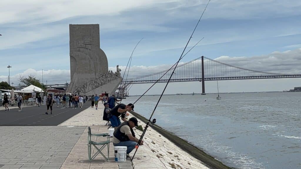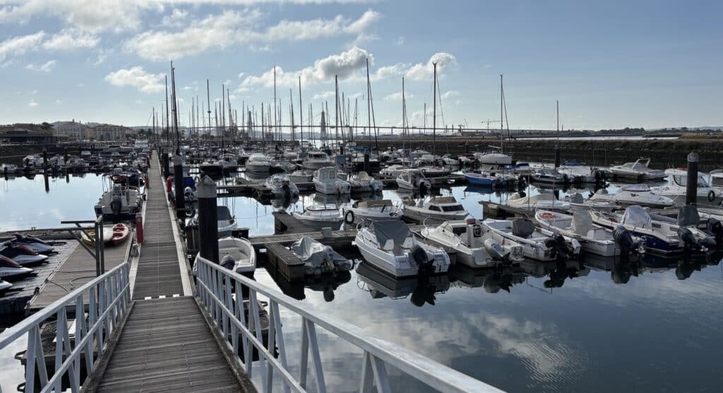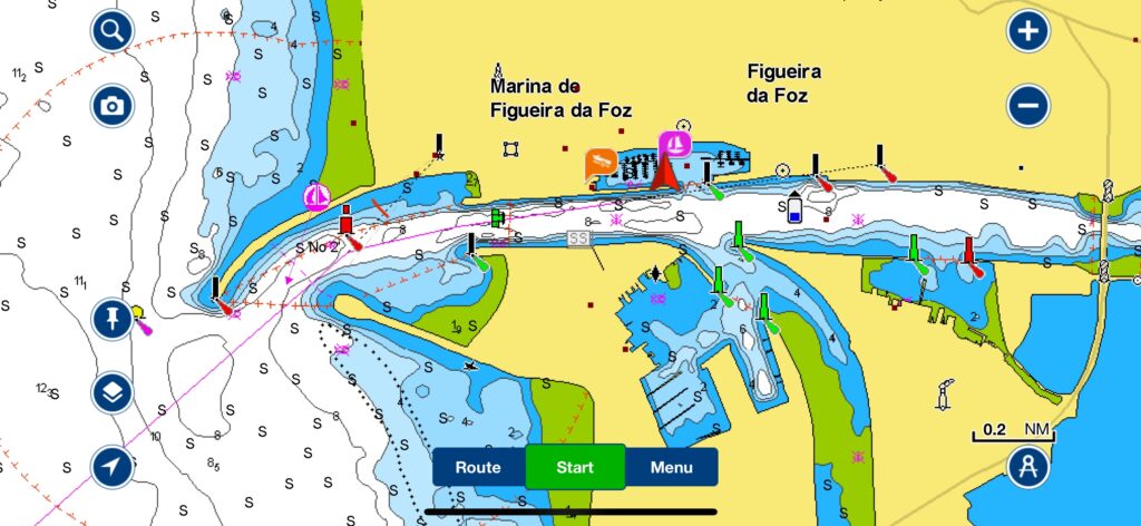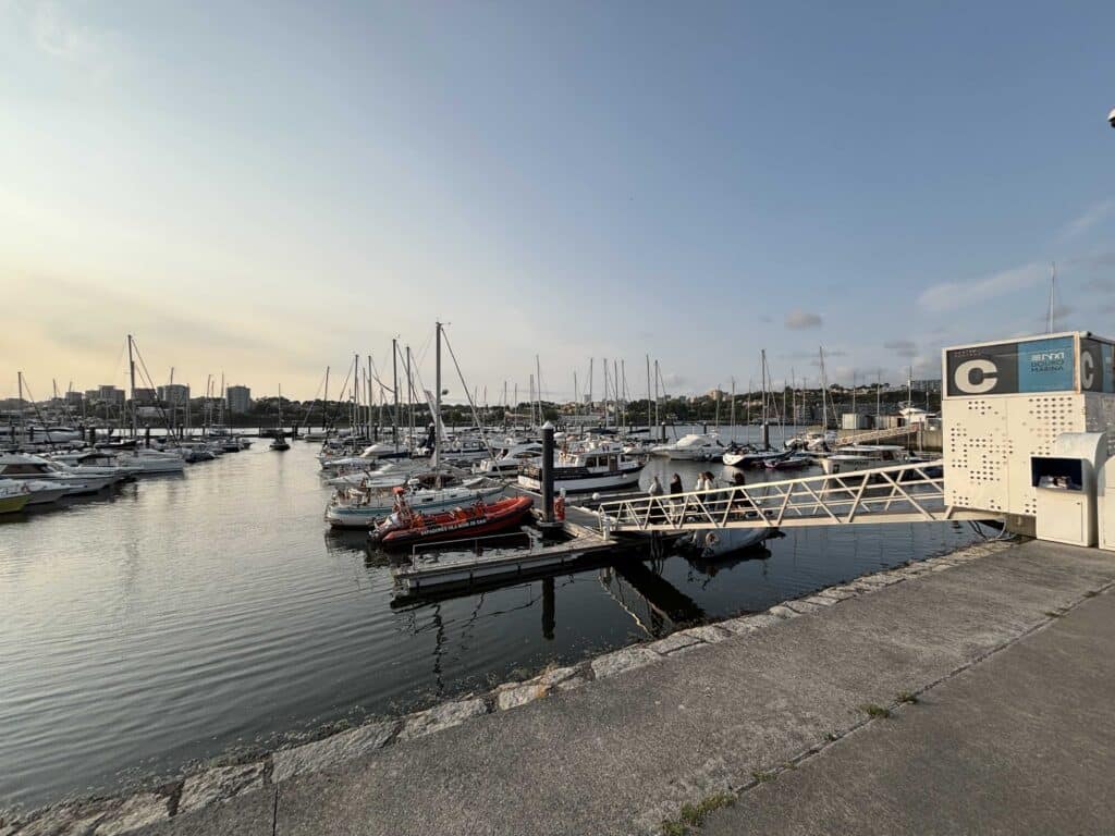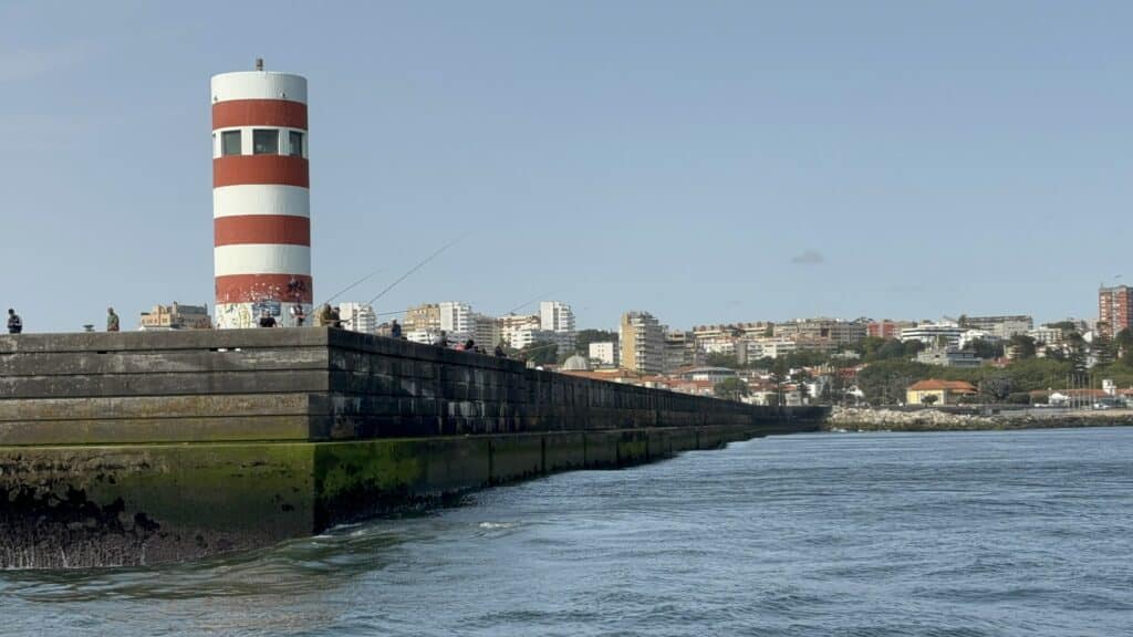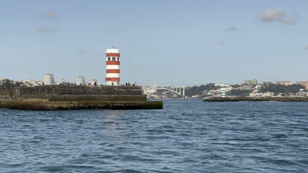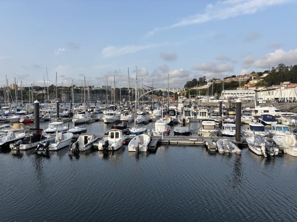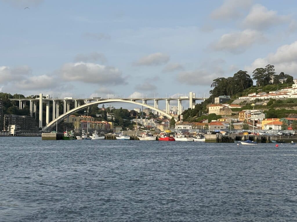 Det var skönt att slippa rullningarna från dyningen när vi rundade vågbrytaren, som var full av fiskande portugiser, på väg in till Porto. Vi körde inte ända in till Porto utan övernattade i Douro Marina nära utloppet av floden Duero som passerar genom staden. Vi kunde se den första bron över floden, Arrabida-bron, från marinan och på land var många nya byggnader med affärer, restauranger, lägenheter och en fin sandstrand. Innanför vågbrytaren fanns det också plats för svajankring och flera båtar låg också på bojar där. Vi skulle upp tidigt nästa dag för en ny 60 NM segling till Figueira da Foz så vi åkte aldrig in till Portos gamla kvarter och många broar som skall vara vackra och intressanta.