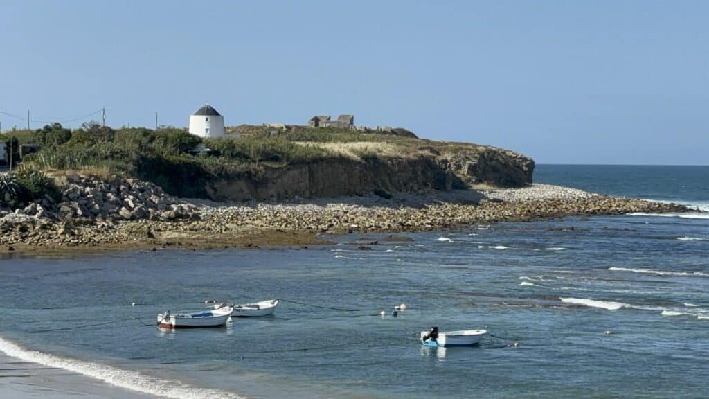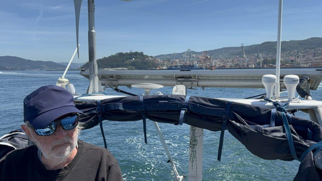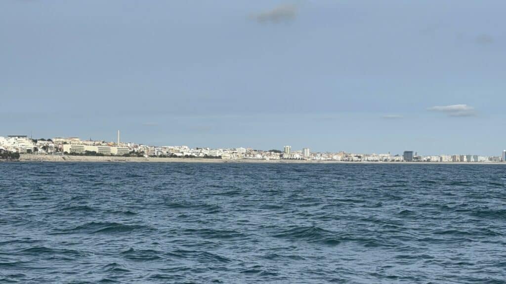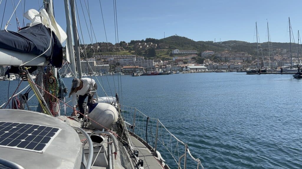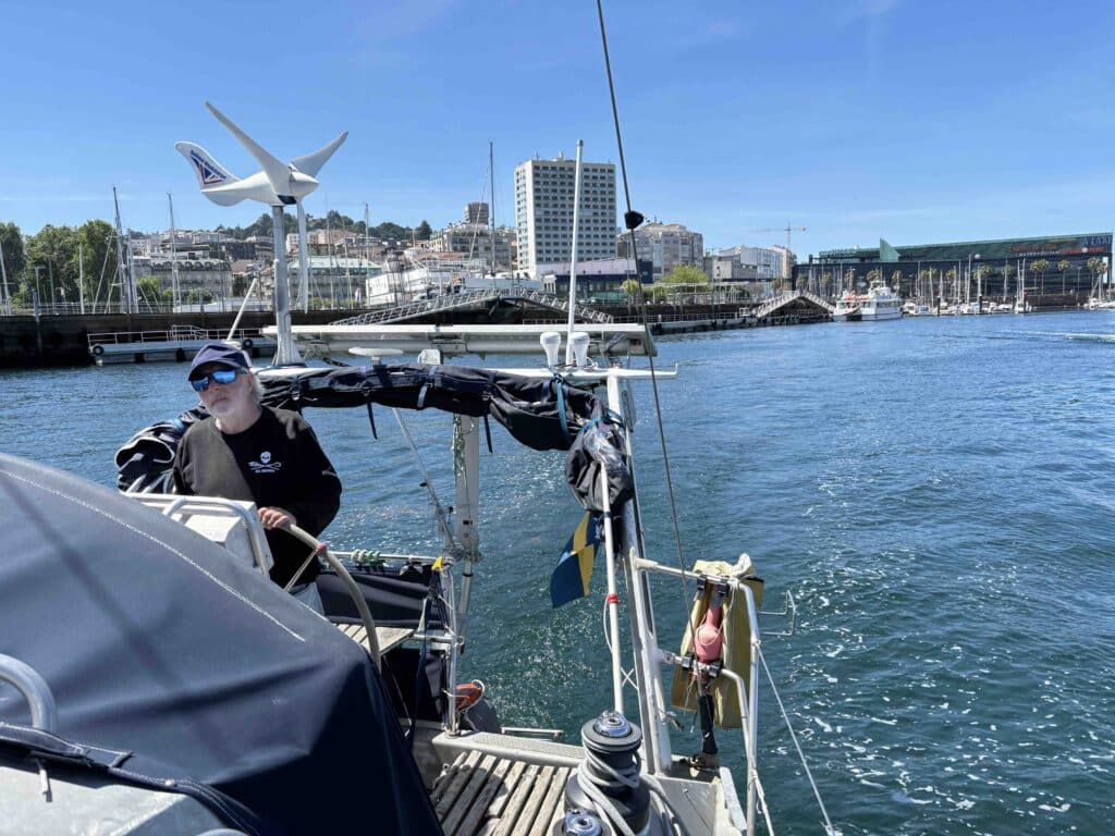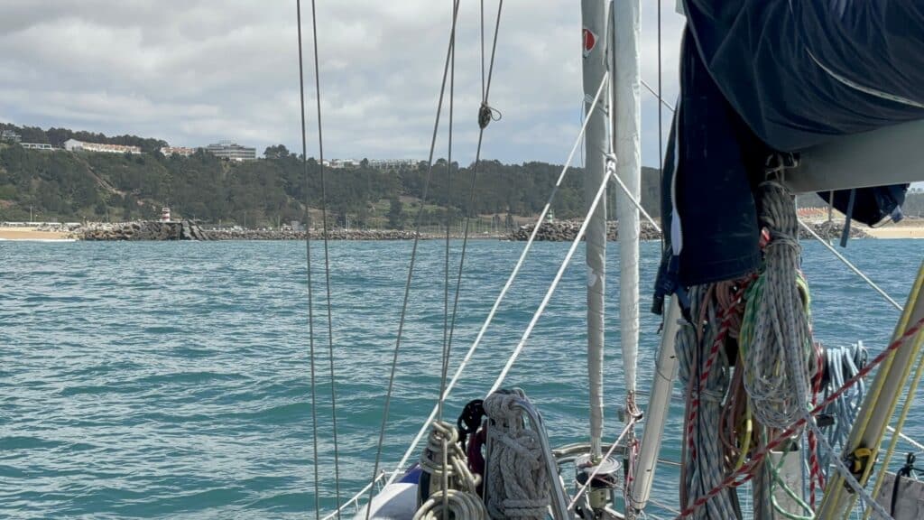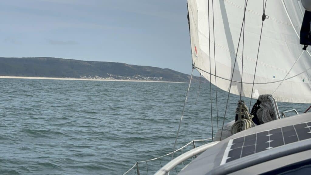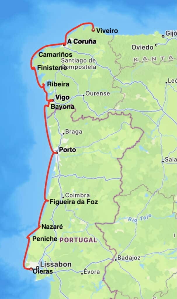 Nackdelen med vår vistelse i Baiona var att Amandas tidslucka krympte så hon beslutade att åka hem ganska omedelbart från Baiona med buss till Vigos flygplats. Så det var bara Tompa och jag kvar på Ikigai. Med bara två ombord bestämde vi oss för att bara göra dagsseglingar ner till Lissabon. En anledning var att vi inte hade någon automatstyrning och tyckte det var onödigt med långa nattpass och lite sömn när det inte behövdes. En annan anledning var att vi ville kunna se alla fiskeredskap och fiskebåtar för att undvika dem då vi gick nära kusten. En tredje anledning var att vi såg en möjlighet att se och uppleva fler platser.