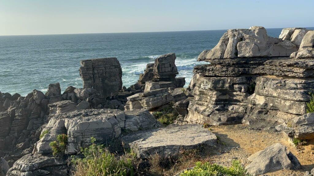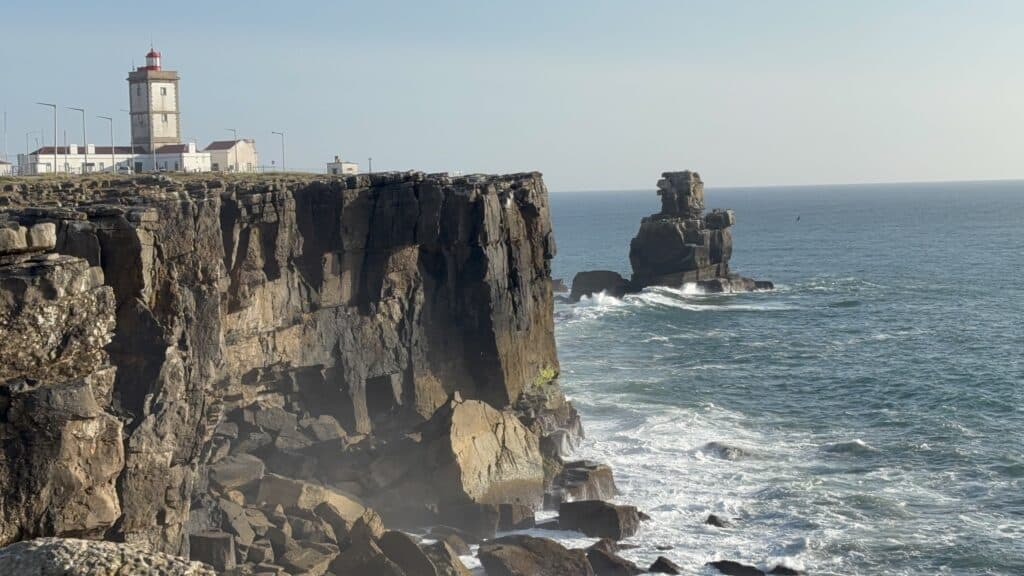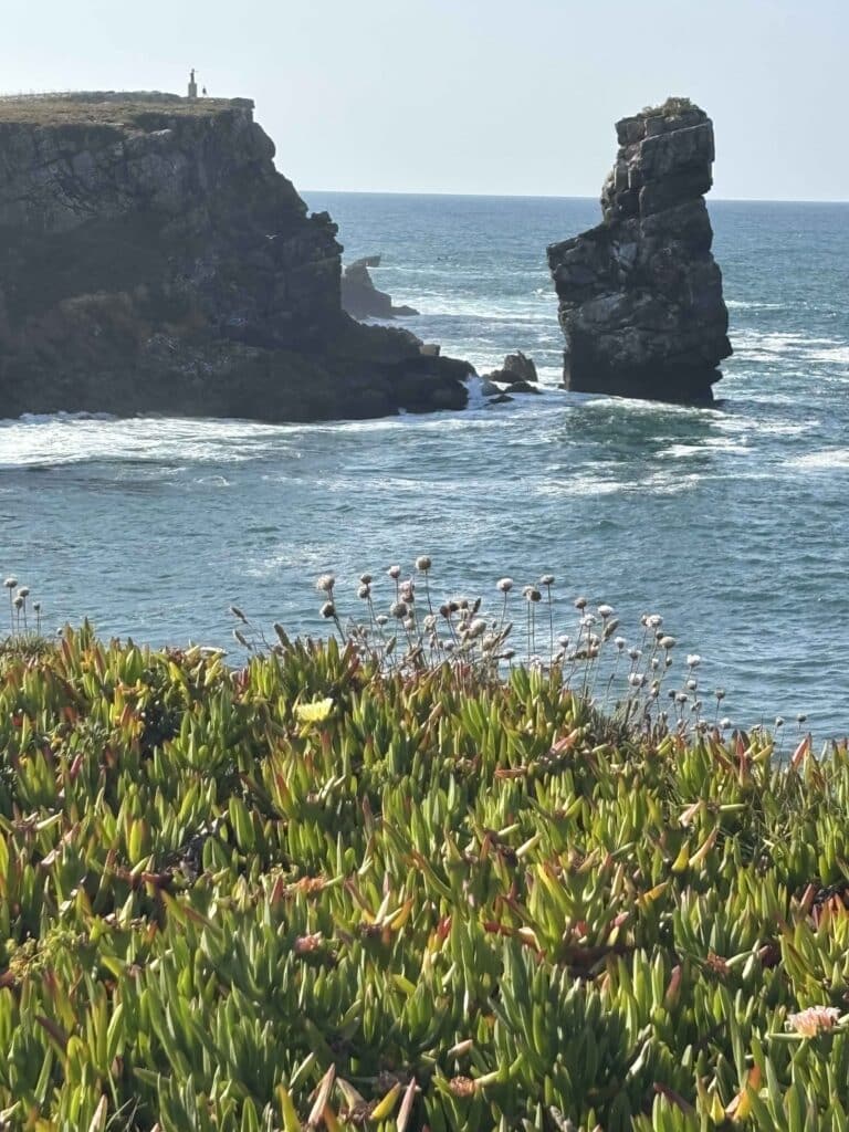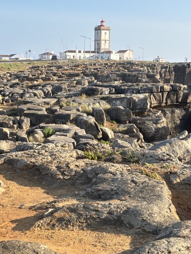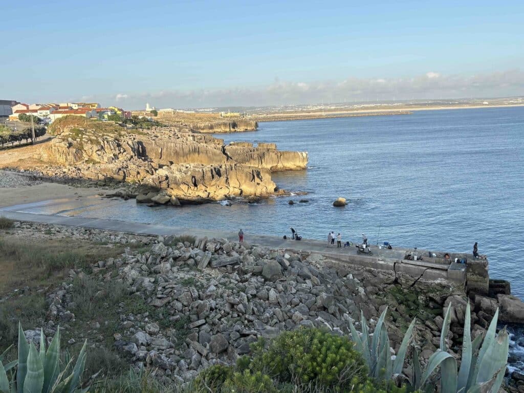 Peniche visade sig vara en liten portugisisk pärla, hade mycket av Nazarés spektakulära skönhet men mindre turistig. Man hade också bra surfvågor på de sandstränder som låg på bägge sidor om halvön så på senare tid har man också lockat till sig mer turister. Peniche är egentligen en ö då en flod går tvärs genom halvön, men den är torrlagd vid lågvatten. Staden har många byggnader från medeltiden, främst kyrkor och kloster men även en ringmur och fort. Men man har hittat lämningar från tiden för neandertalare i området, så folk har bott här länge. Peniche har små grusvägar för promenader längs hela kusten runt ön som har spännande berg och stenformationer som den ständiga dyningen hjälper till att forma och som är från den geologiska tidsåldern Torcian inom Jura perioden (för ungefär 180 miljoner år sedan). Runt den exponerade Atlantkusten reser sig rauk-liknande formationer ur havet som statyer. Ruiner av olika fortifikationer finns runt ön och staden och längst ut på udden ståtar fyren “Cabo Carvoeiro“, där kan man se på solnedgången medan man äter middag på fyrens restaurang. Runt kustvägen finns möjlighet för husbilar att parkera och utsikten de har från sina rullande hem är fantastisk. Och även här fanns det avsatser på klipporna för att kunna fiska från.