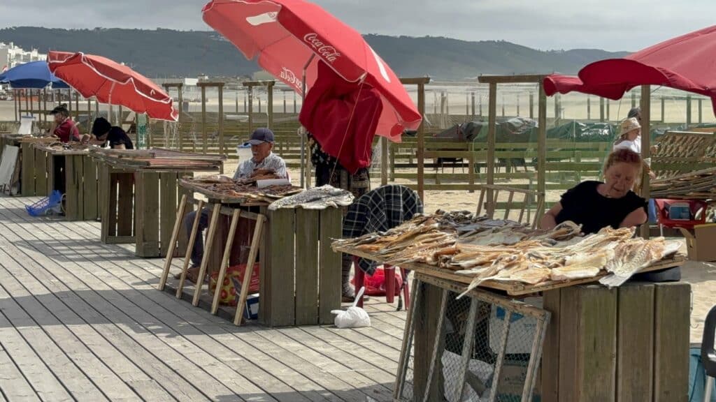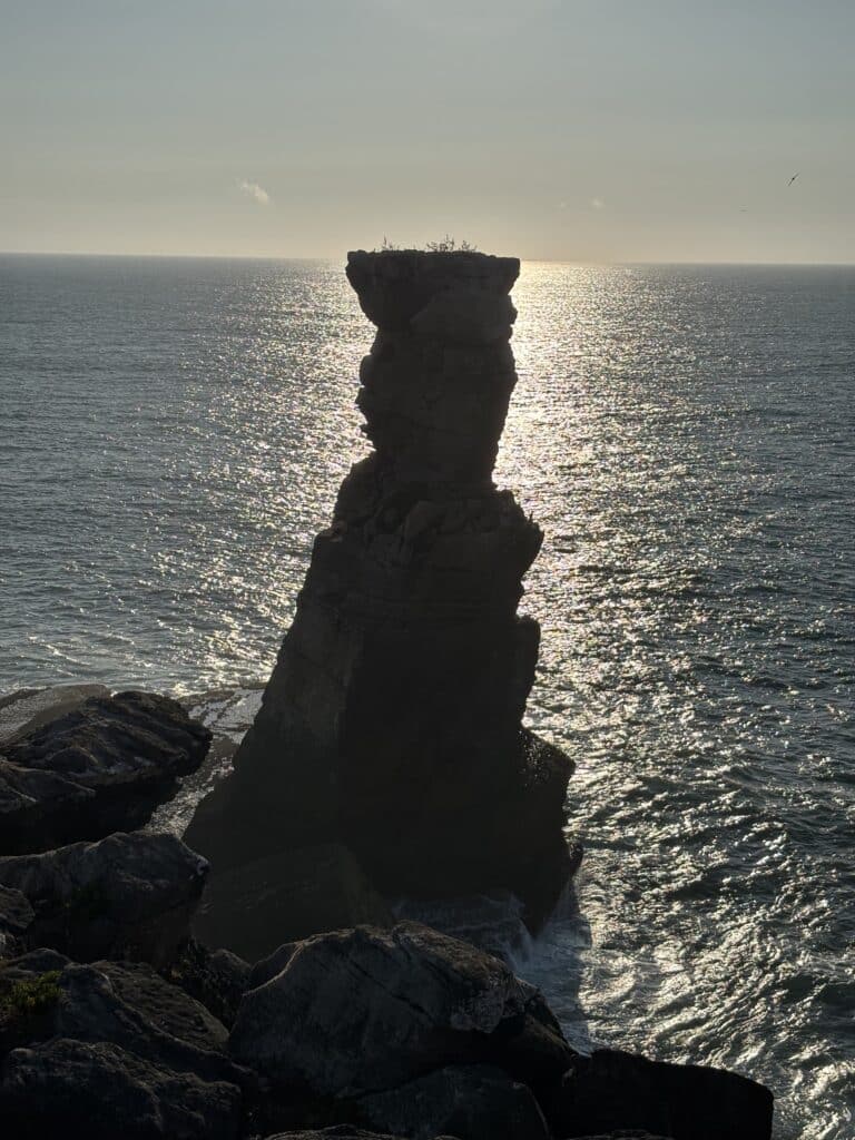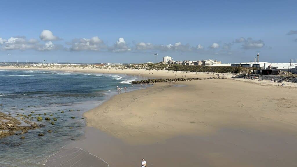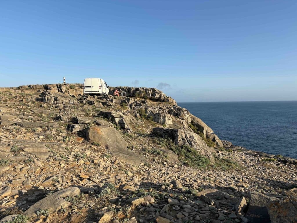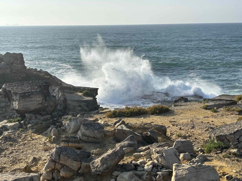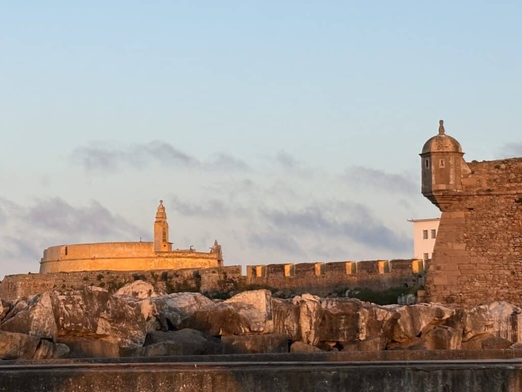 Peniche visade sig vara en liten portugisisk pärla, hade mycket av Nazarés spektakulära skönhet men mindre turistig. Man hade också bra surfvågor på de sandstränder som låg på bägge sidor om halvön så på senare tid har man också lockat till sig mer turister. Peniche är egentligen en ö då en flod går tvärs genom halvön, men den är torrlagd vid lågvatten. Staden har många byggnader från medeltiden, främst kyrkor och kloster men även en ringmur och fort. Men man har hittat lämningar från tiden för neandertalare i området, så folk har bott här länge. Peniche har små grusvägar för promenader längs hela kusten runt ön som har spännande berg och stenformationer som den ständiga dyningen hjälper till att forma och som är från den geologiska tidsåldern Torcian inom Jura perioden (för ungefär 180 miljoner år sedan). Runt den exponerade Atlantkusten reser sig rauk-liknande formationer ur havet som statyer. Ruiner av olika fortifikationer finns runt ön och staden och längst ut på udden ståtar fyren “Cabo Carvoeiro“, där kan man se på solnedgången medan man äter middag på fyrens restaurang. Runt kustvägen finns möjlighet för husbilar att parkera och utsikten de har från sina rullande hem är fantastisk. Och även här fanns det avsatser på klipporna för att kunna fiska från.