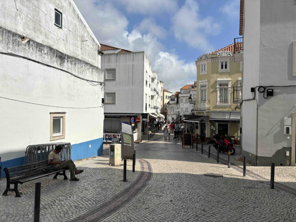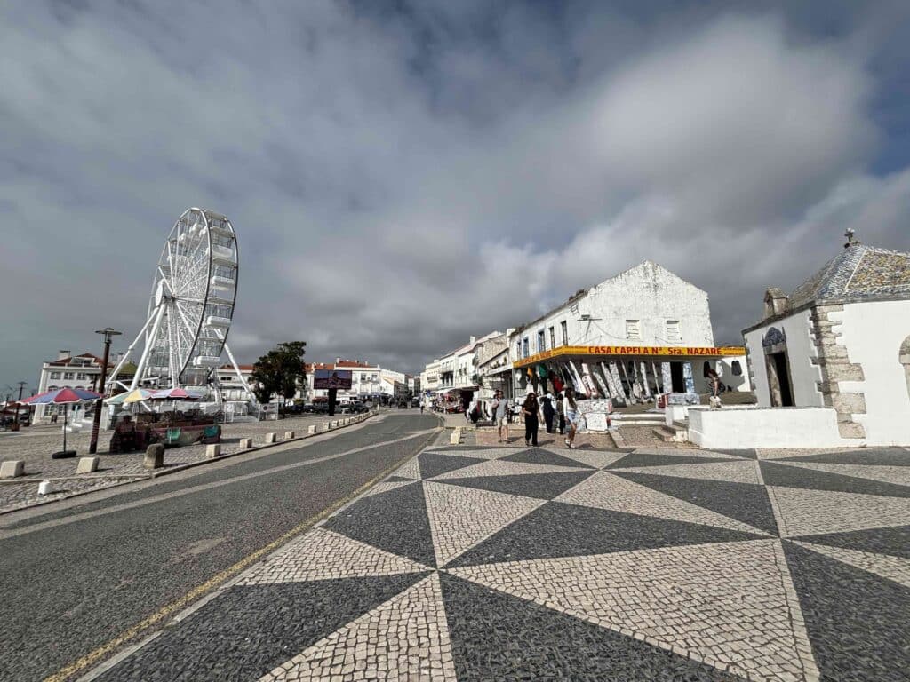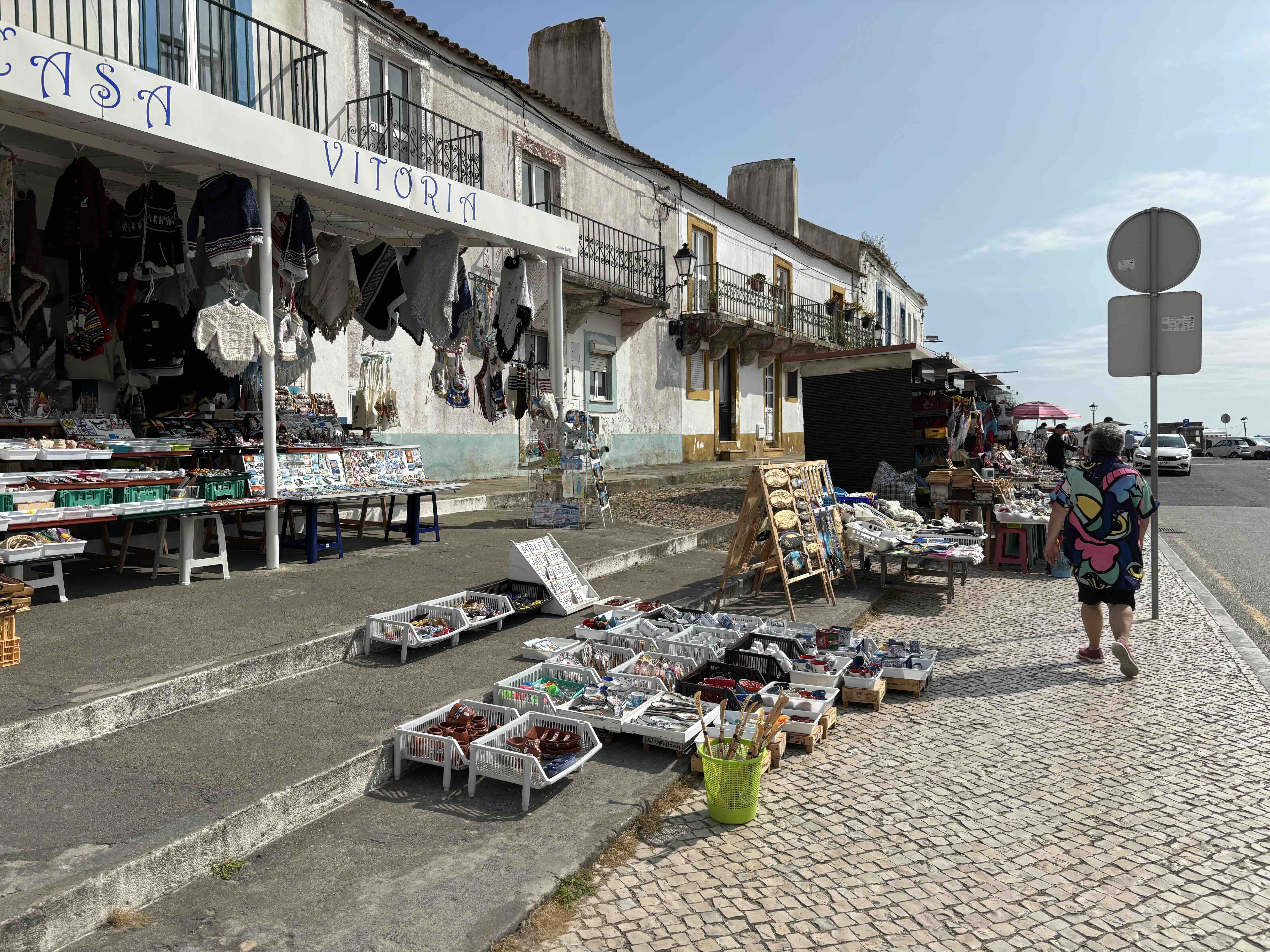 Det var bra med en kortare distans så jag hann utforska Nazaré lite närmare innan vi skulle vidare nästa dag. Staden är charmig men mycket turistig med många tavernor och affärer som erbjuder allt du inte behöver. På strandpromenaden bort mot höjdplatån går man på mönster av svart och vita gatstenar som är vanligt i Portugal och man passerar stånd med diverse utbud, allt från torkad fisk till smycken. På stranden ligger de vackra traditionella båtarna med höga förar som skall klara vågorna när man sjösätter dem i dyningen. Själva staden har vindlande gator med gamla hus som är intressant att utforska, men jag styrde kosan mot bergsplatån där fyren fanns, en stadsdel kallad Sitio..